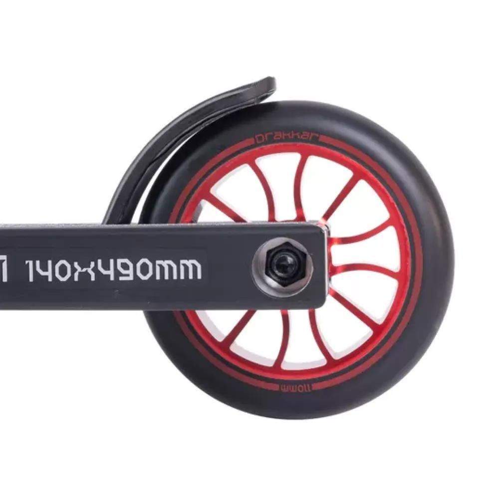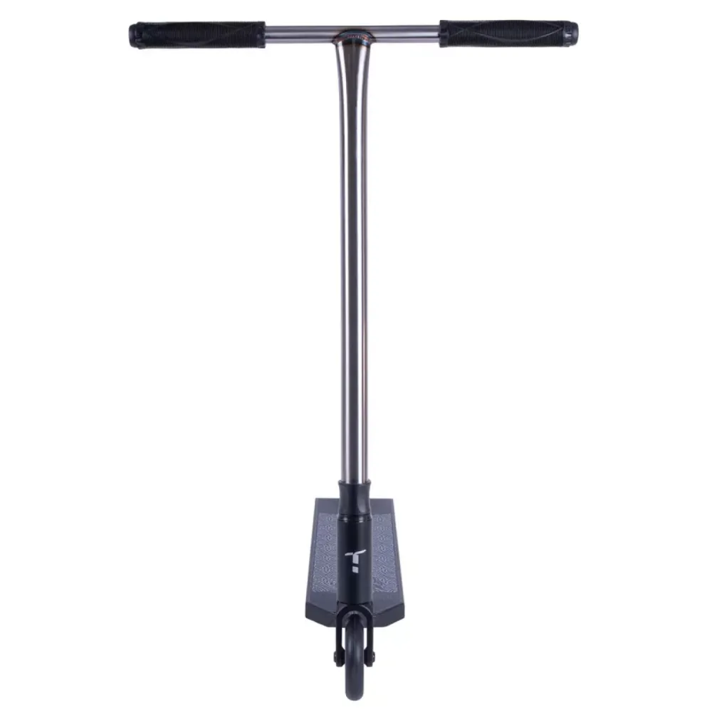 Особое внимание уделено конструкции руля: он выполнен из высокопрочной стали, имеет внешний диаметр 34,9 мм, высоту 615 мм и ширину 540 мм, что гарантирует уверенное сцепление и удобство в эксплуатации. Вилка самоката изготовлена из алюминия и оснащена системой компрессии HIC, обеспечивающей эффективное гашение ударов при приземлении. Надежная дека, также выполненная из алюминия, обладает интегрированным типом рулевой, шириной 140 мм и длиной 490 мм, а футспейс в 340 мм позволяет правильно распределить нагрузку, что особенно важно для уверенного контроля при выполнении сложных элементов.