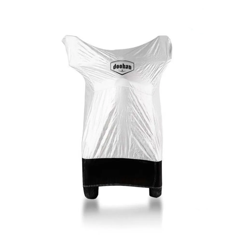 Чехол iTank doohan предназначен для защиты вашего электроскутера от негативных факторов окружающей среды. Его размеры и форма обеспечивают идеальное прилегание к корпусу, исключая зазоры и случайное раскрытие. Чехол изготовлен из качественного водонепроницаемого материала, который надежно защищает корпус транспортного средства даже от обильных осадков. Изделие выполнено в эффектном серебристом цвете с черной полосой по низу, что делает его менее марким. На боковой и фронтальной части нанесен фирменный логотип производителя. Уход за чехлом не требует особых усилий, он легко моется и быстро высыхает в расправленном виде. Бережное хранение электроскутера не менее важно, чем регулярное техническое обслуживание. Длительное воздействие прямых солнечных лучей, ветра и осадков неминуемо приводит к ухудшению внешнего вида и быстрому износу узлов и механизмов. Чехол iTank doohan продлит срок службы вашего электроскутера, обеспечивая его бережное и эстетичное хранение как в гараже, так и на открытом воздухе. Надежная защита от пыли, грязи, ветра и осадков позволит пользователю не беспокоится о сохранности транспортного средства даже во время длительных перерывов в эксплуатации.